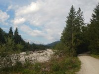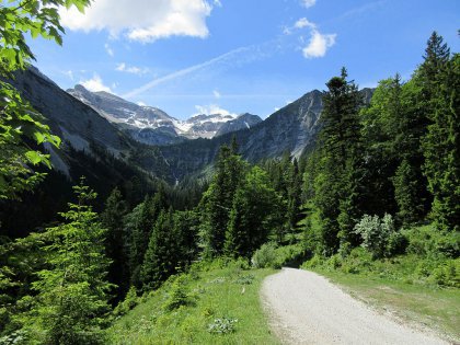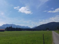 Kurze aber interessante Bike & Hike Tour von Krün entlang schattiger Forstwege hinauf zur bewirteten Krüner Alm (1621m) im Estergebirge. Auf gutem Untergrund geht es per Bike bis zur Materialseilbahn der Krüner Alm. Nur die letzten einhundertfünfzig Höhenmeter sind über einen Pfad zu Fuß zu überwinden. Belohnt wird man mit tollem Ausblick über das Tal hinweg auf Soierngruppe, Karwendel und Wettersteingebirge.