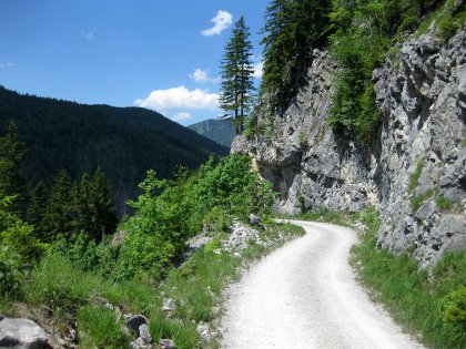 Von Wildbad Kreuth führt die Tour erst entlang der Via Bavarica Tyrolensis bis nach Winterstube und bergauf zur bewirteten Schwarzentennalm (1027m). Anschließend geht es über Forstwege hinauf zum Sattel südlich des Hirschbergs (1668m), runter zur Duslaualm (1040m) und über einen ruppigen Trail der entsprechendes Fahrgeschick erfordert schließlich nach Kreuth. Stets an der Weißach entlang zurück nach Wildbad Kreuth.