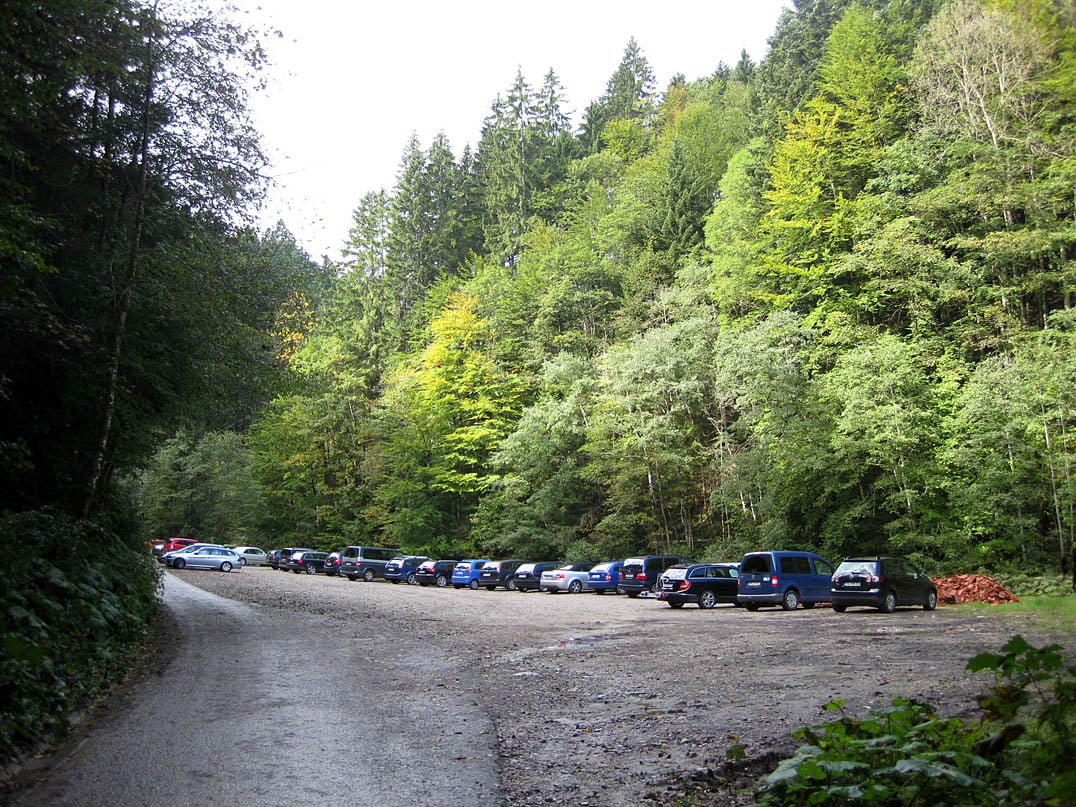Vom Parkplatz aus folgen wir der Teerstraße weiter und überqueren wenige Meter später die Brücke über den Arzbach. Am gegenüberliegenden Ufer fahren biegen wir rechts ab und fahren tiefer ins Längental hinein. Zügig treten wir durch das bewaldete und damit schattig-kühle Tal, durch welches sich der Arzbach parallel zur Straße verlaufend windet. Etwa eineinhalb Kilometer und nur wenige Höhenmeter später passieren wir die zweite Parkmöglichkeit im Längental und gelangen anschließend an eine zweite Brücke. Bis hierhin konnte man kaum von Anstrengung sprechen und so mancher könnte auf falsche Gedanken kommen. Doch wir sehen uns nun einer plötzlich stark ansteigenden Rampe gegenüber, einer gekiesten Forststraße der wir steil bergan folgen. Es erwarten uns anschließend bis zu zwanzig Prozent Steigung, weshalb sich die anfangs noch so einfach wirkende Bike-Tour tatsächlich als abwechslungsreiche und teilweise beschwerliche Route entpuppt. Und so führt uns auch der darauffolgende Kilometer kurvenreich und mit einer durchschnittlichen Steigung von rund fünfzehn Prozent fordernd durch den Bergwald hinauf, bis wir zu einer Weggabelung gelangen.