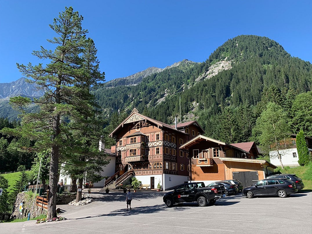 An der Westseite des eindrucksvollen Stausees entlang, folgen wir der Straße südwärts bis zum Eingang ins Zamser Tal. Nachdem wir die Brücke über den Zamserbach genommen haben, halten wir uns gemäß Beschilderung rechts und durchqueren nur wenige Meter weiter das Tor der Jausenstation Zamsgatterl (1800m). Der spannende Teil der Tour beginnt. Am Bach entlang geht es zunächst hinein in das Tal, das von beiden Seiten her von hohen Berggipfeln umgeben ist.