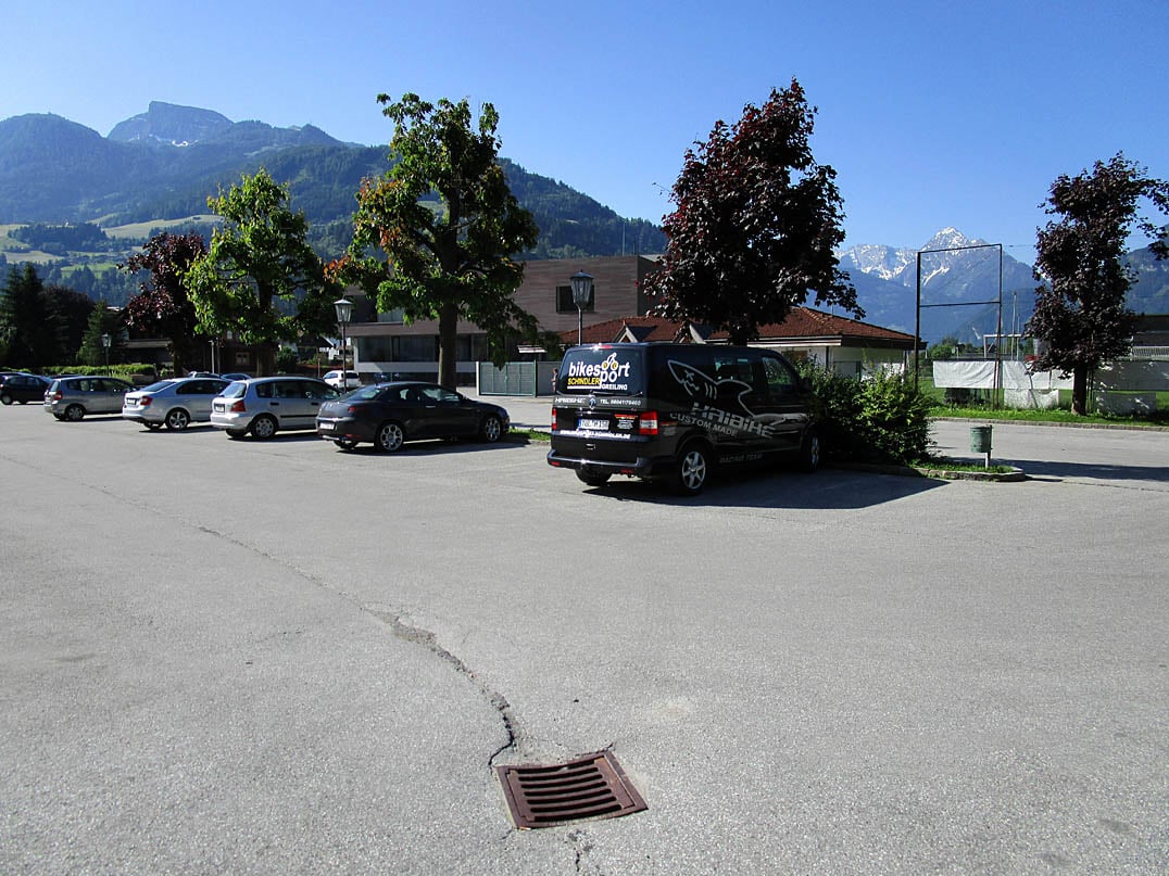 Unmittelbar vom Parkplatz neben dem Freizeitpark im Ortszentrum von Zell fahren wir auf den geteerten Radweg, der uns flußaufwärts parallel zum Ziller nach Süden führt. Nach etwa dreihundert Metern führt rechts eine Fußgängerbrücke über den Ziller hinweg ans gegenüberliegende Ufer. Dort biegen wir rechts ab, folgen dem schmalen Radweg etwa sechzig Meter nach Norden um anschließend links in die Zufahrt zur Zillertaler Höhenstraße, eine beliebte Mautstraße in den Tuxer Alpen, einzubiegen.