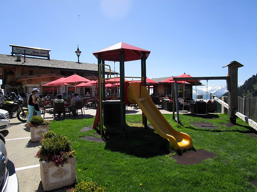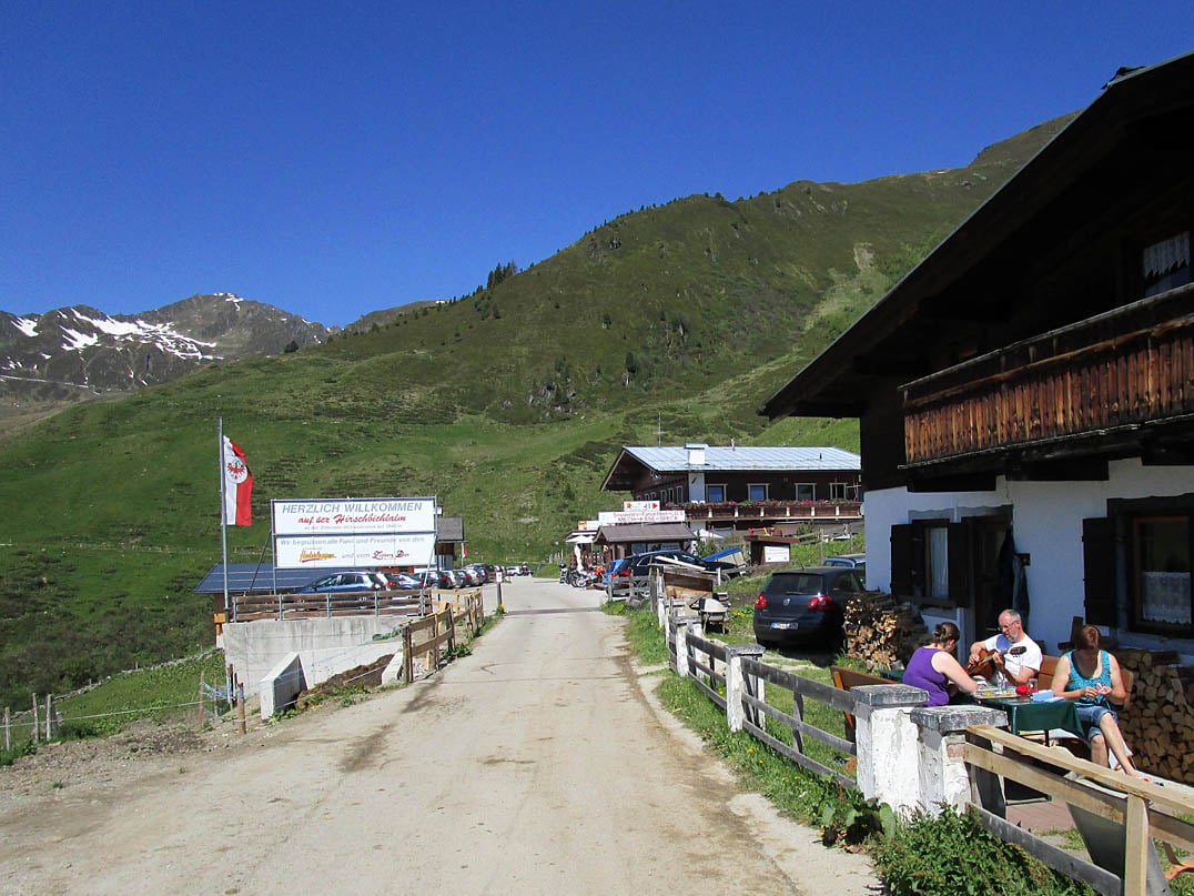 Noch etwa einen Kilometer bei rund fünfzehn Prozent Anstieg an der Abzweigung zur Grünalm (1800m) rechter Hand vorbei und wir haben unser Etappenziel erreicht - den Alpengasthof Hirschbichlalm (1840m), gefolgt vom Almgasthaus Zellberg Stüberl (1840m) liegen vor uns. Weil das Zellberg Stüberl das Heimathaus der "Zellberg Buam" - einer bekannten, volkstümlichen Musikgruppe - ist, werden die Besucher auf der aussichtsreich gelegenen Terrasse des Almgasthauses an der Zillertaler Höhenstraße regelmäßig mit Live-Musik unterhalten. Und auch auf der benachbarten Hirschbichlalm treten wöchentlich Musikgruppen aus dem Zillertal auf. Kein Ort also, an dem man nach der beschwerlichen Auffahrt garantierte Bergruhe genießen kann. Ein Ort jedoch, an dem das Panorama sowie die angebotenen Speisen und Getränke für die Strapazen entlohnt.