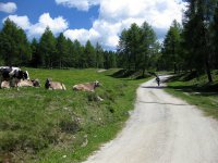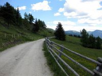 Vom Parkplatz Zumis weit oberhalb von Lüsen führt diese Mountainbike-Tour auf gut befahrbaren Wegen hinein in die landschaftlich reizvolle Rodenecker-Lüsner Alm. Vorbei an der bewirteten Oberhauser Hütte (1725m) und dem beliebten Einkehrziel Ronerhütte (1832m) gelangt man auf die weitläufige Hochalm wo man während der mühelosen Weiterfahrt bis zur Rastnerhütte (1903m) das Bergpanorama der Dolomiten genießen kann.