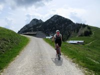 Abwechslungsreiche Bike&Hike-Tour vom Parkplatz Fleck/Hohenreuth auf für Fahrzeuge gesperrtem Asphaltweg durch Wald und Wiesen bis zur Röhrlmoos Alm (1097m). Von dort aus fährt man stetig bergauf zur Roßsteinalm (1480m). Ab hier geht es zu Fuß weiter hinauf zu Roß- und Buchstein mit traumhaftem Blick über das Voralpenland und ins Karwendelgebirge.