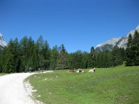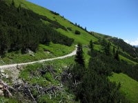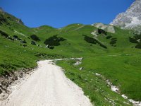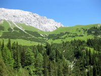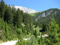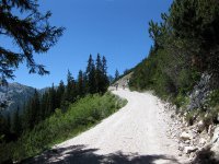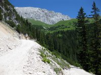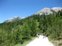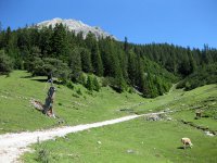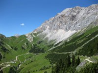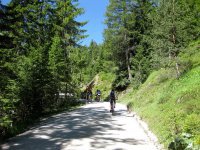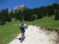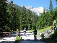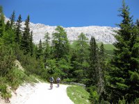 Durchs Gaistal geht's gemütlich. Ab Gaistalalm dann sehr Kräfte fordernde Auffahrt ohne E-Motor in der prallen Sonne. Es gibt nur wenige schattige Stellen zum Anhalten und Durchschnaufen. Die Rotmoosalm liegt wunderschön, nette Wirtsleut und a guads Essen. Die Landschaft, das Felspanorama sind überwältigend. Zurück geht's auf gleichen Weg bis zum Abzweiger Hämmermoosalm und dann auf einem Single Trail in Richtung Hämmermoosalm (wer noch Kraft und Muße hat kann die Hämmermoosalm noch dranhängen) und dann weiter zum Parkplatz Salzbach, so dass es eine Rundtour ist.