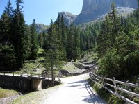 Größtenteils gemütlich führt diese Mountainbike-Tour am Villnösser Bach entlang hinein in das landschaftlich einmalige Villnösstal bis zur Zanser Alm (1680m) und hinauf zur ebenfalls bewirteten Gampenalm (2062m) im Naturpark Puez-Geisler. Ab dieser nimmt die Steigung drastisch zu und verlangt hinauf zur Schlüterhütte (2306m) der Kondition einiges ab. Dafür wird man mit einem grandiosen Panorama belohnt.