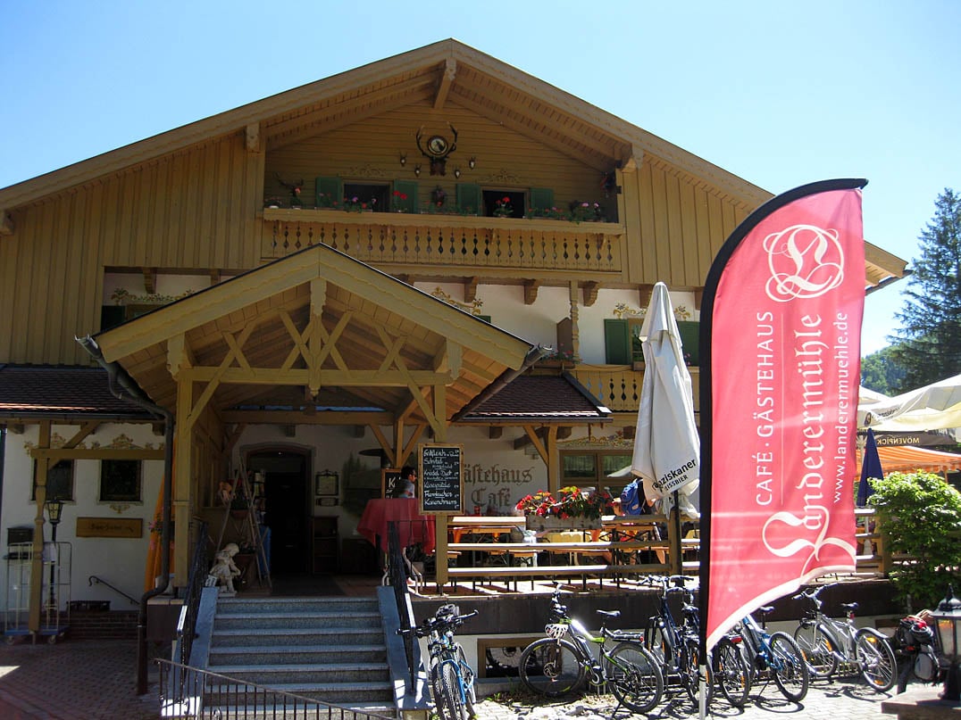 Die Weiterfahrt zum beliebten Sylvenstein Stausee bietet sich an. Jedoch ist zu bedenken, dass man die Strecke auch wieder zurück muss und von der Schronbachalm aus bereits mehr als einhundertfünfzig Höhenmeter Anstieg zu bewältigen sind. Wer keine Verpflegung mitgenommen hat, findet nahe dem Ausgangspunkt das Café Landerermühle (719m). Achtung: Donnerstag und Freitag sind dort Ruhetage, außer feiertags.