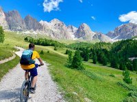 Steile aber landschaftlich unübertreffliche Mountainbike-Tour von St. Christina in Gröden über die Regensburger Hütte auf die Seceda
