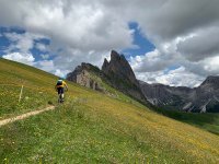 Eindrucksvoll gestaltet sich die MTB-Tour von St. Christina in Gröden über die Regensburger Hütte (2037m) hinauf in das Almgebiet Col Raiser und auf den Gipfel der Seceda (2519m). Mit Blick auf die Geislerspitzen führt eine kurze Trailpassage wieder hinunter ins Almgebiet. Auf der teilweise sehr steilen Auffahrtsstrecke befinden sich zahlreiche bewirtete Almhütten die zur Rast einladen. Das Panorama ist unübertrefflich!