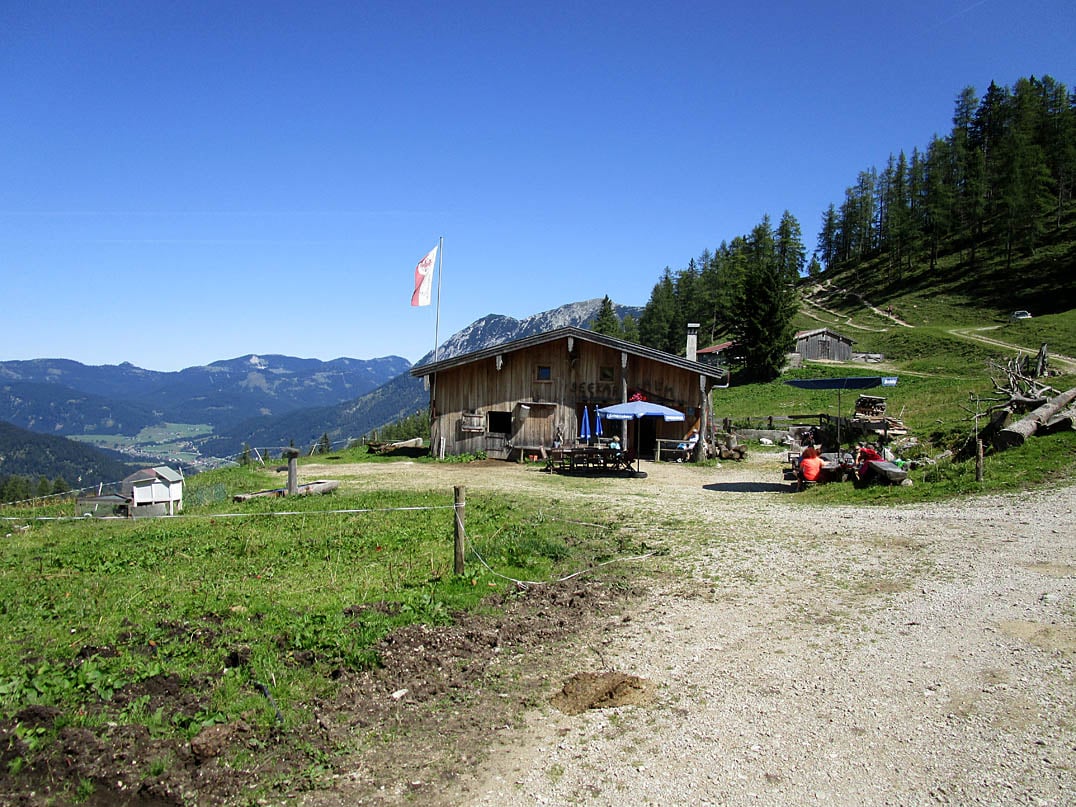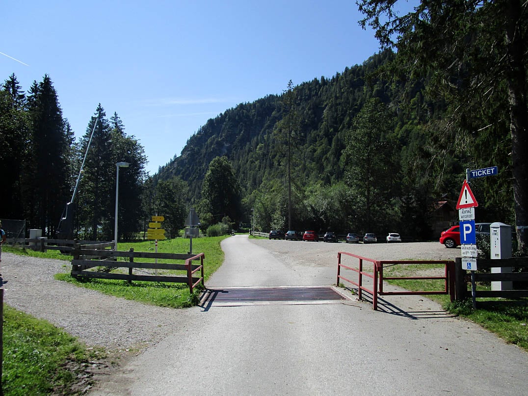 Vom gebührenpflichtigen Parkplatz im Achenkirchener Ortsteil Hinterwinkel weisen uns zahlreiche Schilder den Weg rechter Hand vorbei an einem Bauernhof und linksseitig des Oberaubaches in Richtung des gleichnamigen Oberautals. Schon nach etwa dreihundert Metern beginnt der Weg von der Gesellschaft des Bachs abzuweichen und ordentlich an Steigung zu gewinnen. Bei etwa sechzehn Prozent Steigung gewinnen wir schnell an Höhe. Der teils lichte Seebergwald, durch welchen die Route uns führt, lässt bereits zu Beginn immer mal wieder Ausblicke auf die Umgebung zu und so treten wir, begleitet von Schreckenspitze (2022m) im Westen, Achenkirch im Norden und dem Achensee im Osten, über zahlreiche Kurven den Berg hinauf.