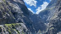 Bin die Runde mit meinem E-Fully gefahren und habe als einzige Abweichung von der vorgestellten Route den Mountainbikeweg (Verschlei-Stundenweg / Klostersäge) vom Kloster Marienberg bis Schlinig genommen. Sehr schöne Runde in herrlicher Landschaft um den Schlinigpass und natürlich die spektakuläre Uinaschlucht. Der Schluchtweg ist mittlerweile fast vollständig an der Außenkante mit Absturzsicherungen versehen. Die sehr gute Beschreibung hier hat mir bei meiner Planung sehr gut geholfen, lediglich die Höhenmeterangabe 2714 hat mich bezüglich meines Akkumanagements etwas erschreckt - mein GPS hat mir nach Beendigung der Tour 2070 Höhenmeter angezeigt ;-) LG Reinhold