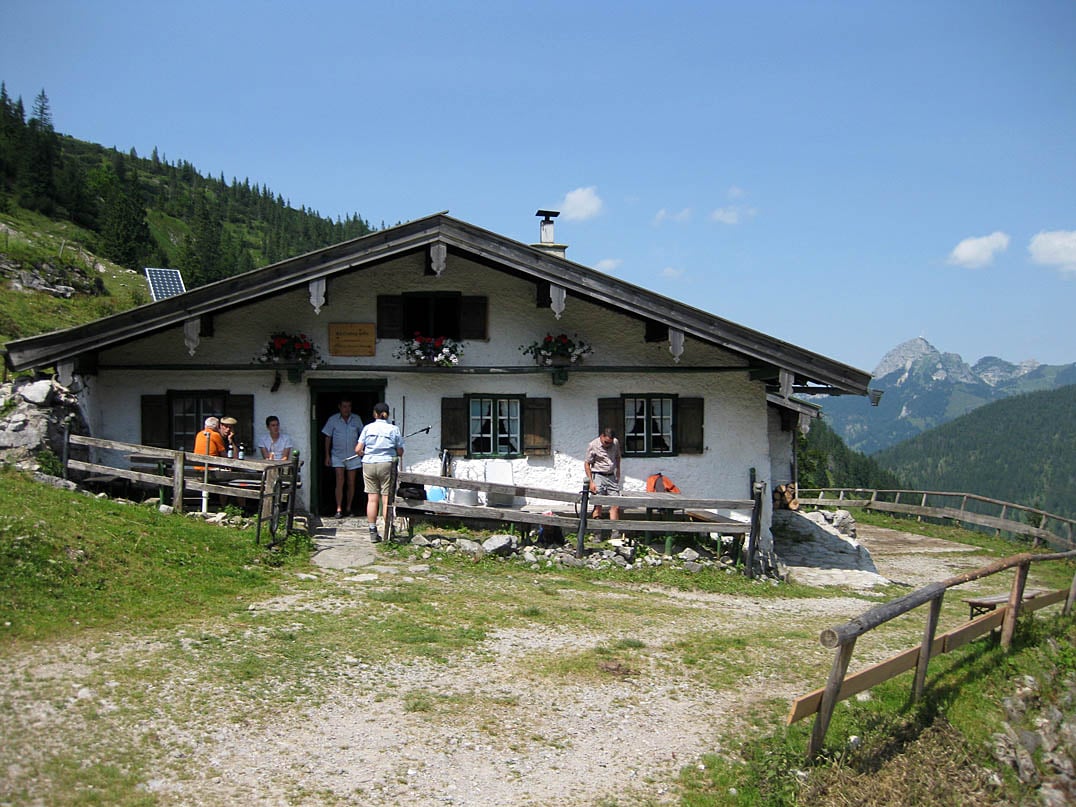 Die idyllisch liegende Alm mit perfektem Blick auf den in naher Ferne liegenden Wendelstein (1838m) lässt das ächzende Mountainbiker-Herz nach der kräftezehrenden Auffahrt höher schlagen und lädt zu einer entspannenden und aussichtsreichen Rast ein. Auch wenn es von der Schellenbergalm (1320m) nur noch circa fünfhundert Meter bis zum Ufer des Soinsees (1458m) sind, so gilt es doch in dieser kurzen Distanz mehr als einhundert Höhenmeter zu überwinden - eine kurze Verschnaufpause lohnt sich daher an dieser Stelle allemal. Spitzenwerte von knapp unter dreißig Prozent Steigung erwarten einen auf dem letzten Stück hinauf zum türkisblauen Bergsee am Fuße der Ruchenköpfe (1805m) und wer in dieser Passage einmal aus dem Tritt kommt und vom Bike absteigt, wird den Rest vermutlich schiebend hinter sich bringen müssen. Rechter Hand eine schroffe Felswand, zur Linken der ungehinderte Blick über das Tal sind wir nur noch wenige Meter entfernt der Soinsee (1458m).