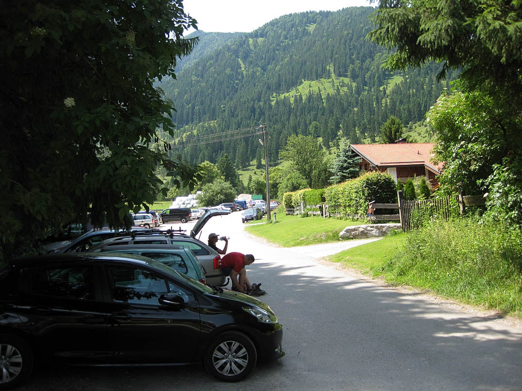 Vom Wanderparkplatz in Geitau führt uns die geteerte Straße in südlicher Richtung aus dem beschaulichen Dorf nahe Bayrischzell hinaus und zwischen den umliegenden Feldern hindurch bis zum Segelflugplatz des LSC Schliersee. Bei gutem Wetter kann man hier ein wenig bei den Starts und Landungen der Luftsegler zusehen. Wir passieren ein Holztor und folgen der Straße noch circa dreihundert Meter geradlinig in Richtung Wald. An einer überschaubaren Verzweigung folgen wir der Beschilderung nach rechts in Richtung Taubenstein, Soinsee und Rotwand. Durch den schattigen Wald hindurch, stoßen wir schon bald auf eine weitere, ebenfalls beschilderte Weggabelung an der wir schließlich rechts weiter über eine kleine Brücke hinwegfahren. Zu Beginn nimmt die Steigung nur langsam zu und erweist sich als äußerst praktische Aufwärmphase.