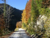 Ich wollte diese Runde am 17.10.2017 fahren und musste feststellen, dass nach ca. 10,5 km ein (relativ neu aussehendes) Verbotsschild für Fahrräder an der Abzweigung, bei der es nach links zur Rotwandlhütte geht, für den Weg nach rechts angebracht ist, der auf dieser Route verläuft (Abzweigung zu sehen in Bild 11). Demnach ist diese Route so leider nicht mehr fahrbar - schade!