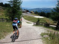 Ohne große Mühen als schöne Rundtour auch für Gelegenheits-Mountainbiker. Mit dem Mountainbike geht es nahe dem Fichtenhof (1305m) in Gfrill, einer Fraktion von Salurn im südtiroler Unterland, hinauf zum Weissensee und weiter zur aussichtsreich gelegenen Trudner Hornalm (1713m) im Naturpark Trudner Horn. Der Rückweg erfolgt rund um das Trudner Horn (1781m).