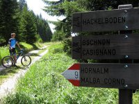 Von Mühlen (847m) bei Truden im Nationalpark führt die Tour zu Beginn über eine kaum befahrene Teerstraße vorbei an Gschnon und im weiteren Verlauf entlang eines Forstweges hinauf zur Hornalm (1713m) am Trudner Horn (1781m). Die Hornalm - zu italienisch "Rifugio Agritur Malga Corno" - ist durch ihre aussichtsreiche Lage und das ausgezeichnete Essen der krönende Abschluss der abwechslungsreichen Auffahrt.
