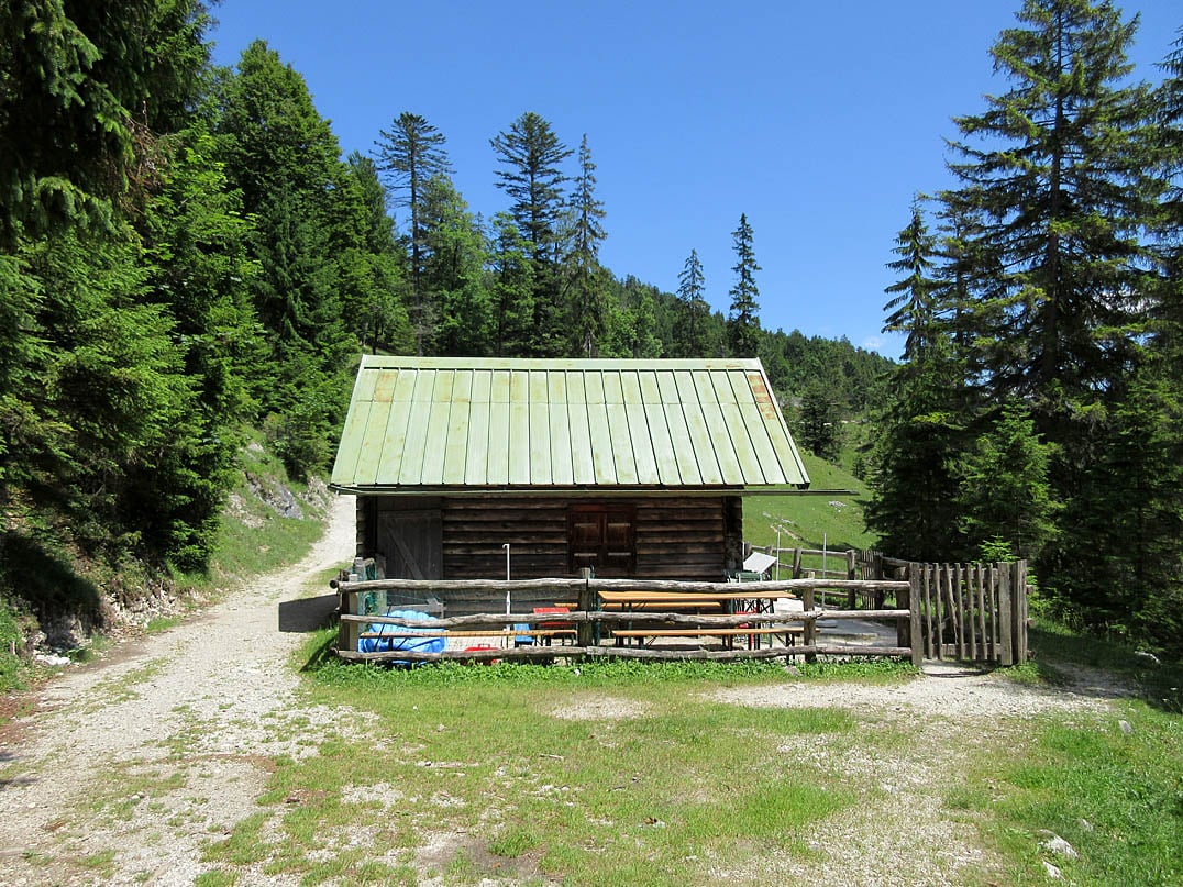 Nach etwas weniger als eineinhalb Kilometern treffen wir auf die Finzbrücke (1077m). Anstatt hier nach links in Richtung Gerold abzubiegen, halten wir uns erneut geradeaus und folgen der Beschilderung gen Esterbergalm. Rund fünf Kilometer kurbeln wir auf dem zumeist gut ausgebauten Fahrweg durch den Wald und genießen die Abgeschiedenheit. Nur selten treffen wir andere Mountainbiker. Nachdem wir ein Weidetor durchquert haben, gilt es nur wenige Meter weiter über ein steiniges Bachbett zu gelangen. Hier ist tragen bzw. schieben angesagt - zum Glück jedoch nur wenige Meter. Schon kurze Zeit später bringt uns der Weg auf das freie Almgebiet der Farchanter Alm (1272m) und im weiteren Verlauf bis zur bewirteten Esterbergalm (1262m), einem beliebten Ausflugsziel für Mountainbiker und Wanderer gleichermaßen.