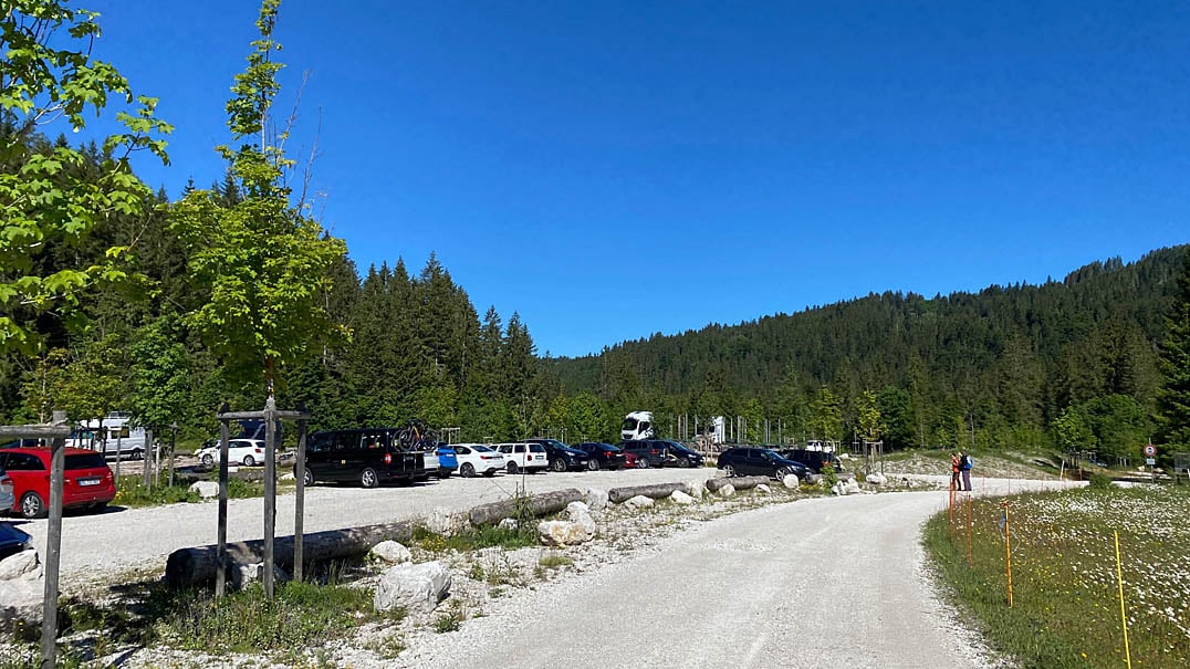 Ab dem Weiler Burggraben geht es auf der Teerstraße durch Schanz und über die Klammbrücke hinunter nach Mittenwald. Kurz bevor wir Mittenwald jedoch erreichen würden, zweigt in einer scharfen Rechtskurve die Zufahrt zu Lautersee und Ferchensee ab. Zweieinhalb Kilometer und etwa einhundertfünfzig Höhenmeter kurbeln wir anschließend vorbei am Lautersee hinauf zur Ferchenseehöhe. Der letzte nennenswerte Anstieg dieser Tour, ehe es am Ferchensee vorbei gemäß Beschilderung zurück nach Elmau und zum Wanderparkplatz, dem Ausgangspunkt unserer Tour, geht.