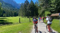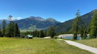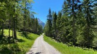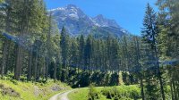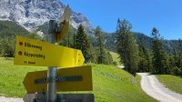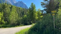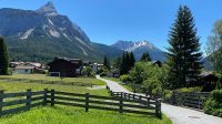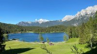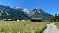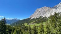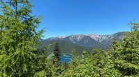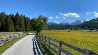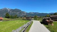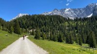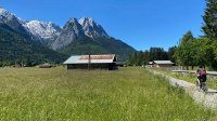 Konditionell fordernde, ausgedehnte MTB-Tagestour vom Wanderparkplatz am Schloss Elmau bei Krün über Garmisch-Partenkirchen nach Grainau und vorbei am Eibsee hinauf zur Hochthörle-Hütte (1479m). Anschließend über Ehrwald hinauf zur Ehrwalder Alm (1502m) und über das beschauliche Gaistal nach Leutasch. Über idyllische Radwege zurück nach Mittenwald sowie über Lautersee und Ferchensee zum Ausgangspunkt.