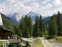 Von Scharnitz führen zahlreiche Routen in die Karwendeltäler zu überregional beliebten Zielen. Ein weniger bekanntes Ziel ist die Zirler Kristenalm (1348m) im Großkristental, die man über das Gleirschtal am Fuße der Gleirsch-Halltal-Kette erreicht. Die zur Almzeit bewirtete Hütte ist dabei nicht zwingend das Ende der Strecke, eine Weiterfahrt durch den Sandeggwald wird mit weiteren Panorama-Highlights belohnt.